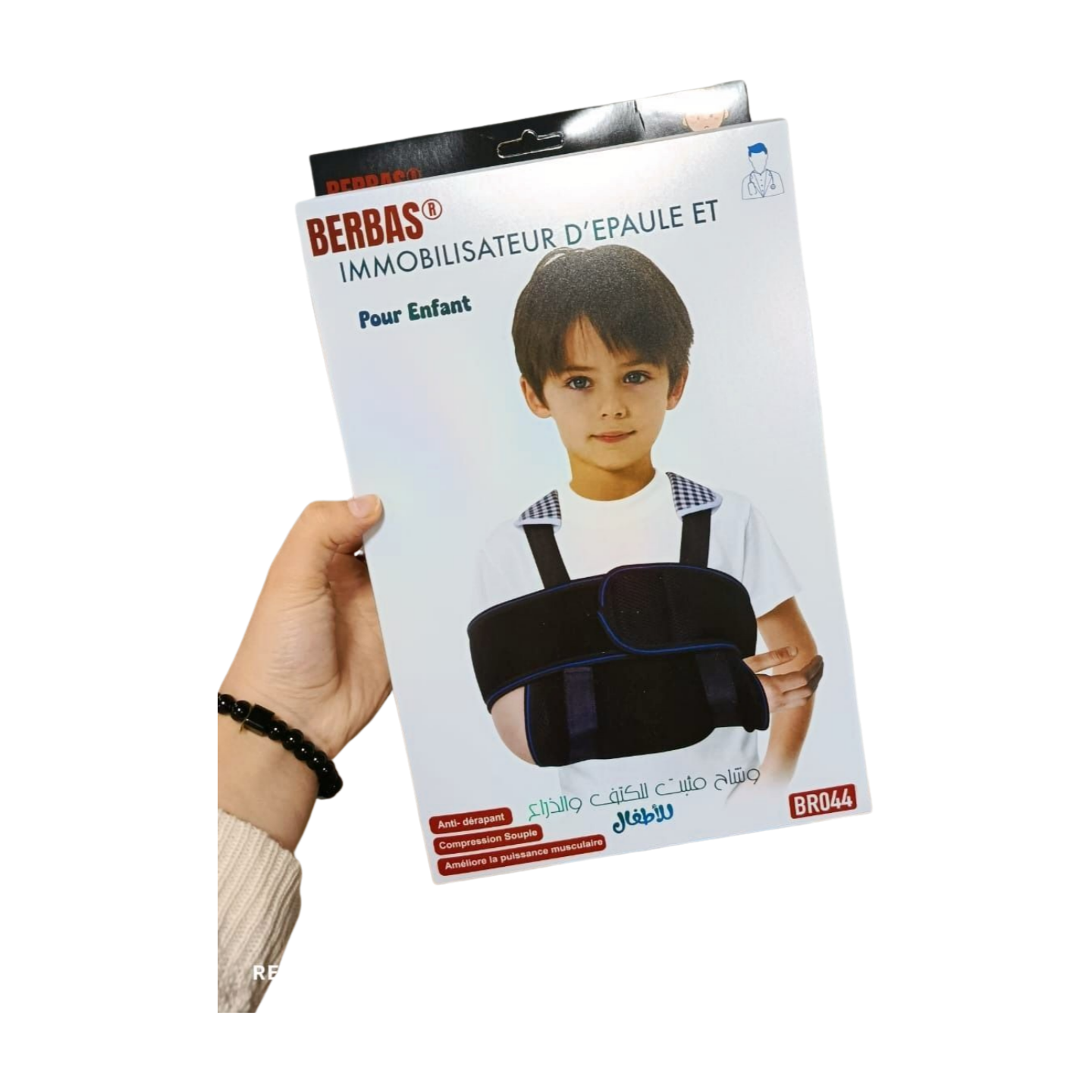 Mots-clés : Immobilisateur épaule enfant, immobilisateur bras enfant, Berbas, BR044, parapharmacie, dispositifs médicaux, soutien épaule enfant, protection bras enfant, récupération blessure enfant.